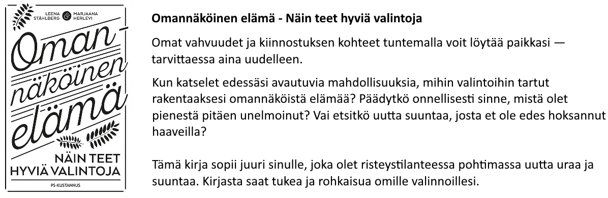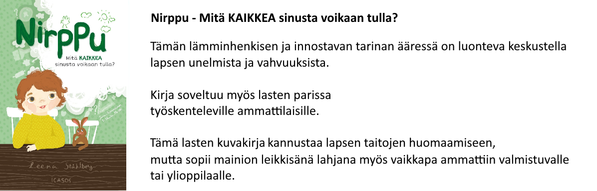 Klikkaamalla kirjan kuvaa pääset tutustumaan tarkemmin Leena Ståhlbergin kirjoittamiin kirjoihin ja tilaamaan kirjoja itsellesi.